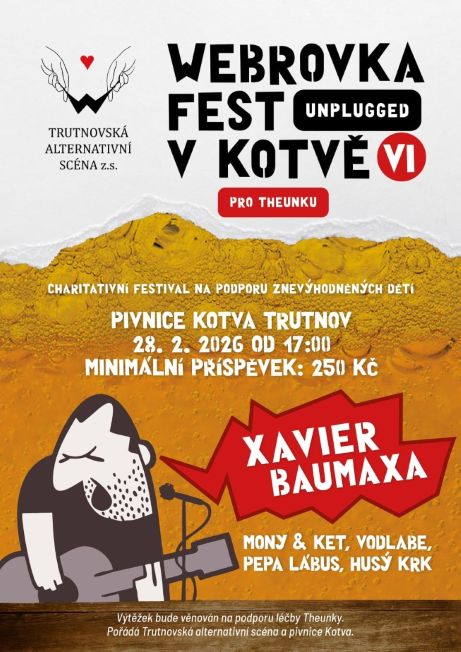 A jsme na samém závěru. A ten již poněkolikáté obstará trutnovský rodák Vašek Bahňous, který nyní žije v Chrudimi. Pravidelní návštěvníci jistě vědí o co půjde. Loňské Bahňousovo vystoupení jak sólové tak poté s kapelou Dead Camel blues band bylo perfektní tečkou a jam sessiom, který se z toho vyvinul trval až do časných ranních hodin. Letos se Vašek na Webrovkafest chystá coby Stoker One Man Band (Bahňous band), tedy pořádná nálož slide kytary, ale jak je všeobecně známo, dokáže vždy vymyslet a připravit nějaké to překvápko. Takže je dost možné, že za sebou zase potáhne bandu mladých muzikantů a rozjedou něco v duchu loňského vystoupení nebo v duchu nějaké recese. Závěrečné zvolání: „Jam session až do snídaně!“.